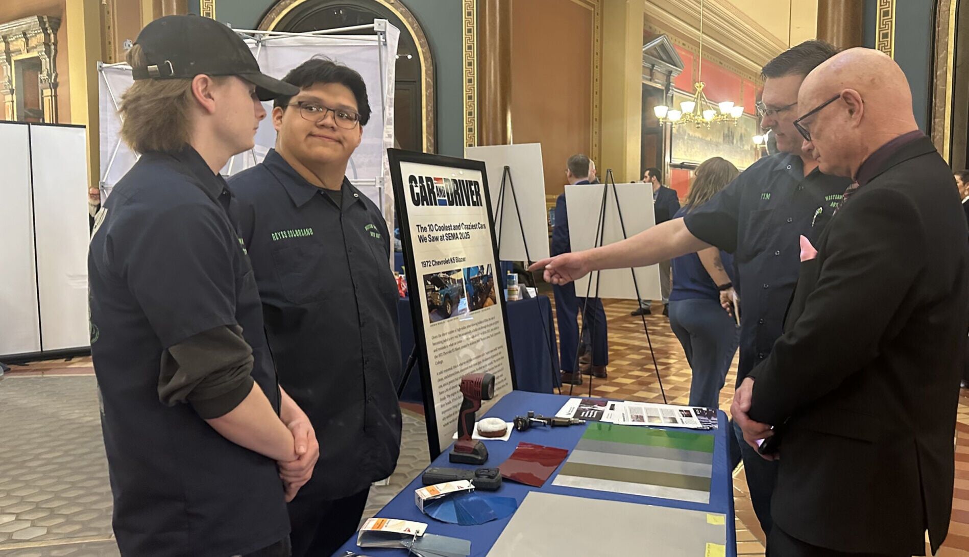 Rep. Steven Holt, R-Denison, spoke with students studying auto body collision repair at Western Iowa Tech Community College during the day on the hill, hearing about their hands-on work and the opportunities the program has provided for them as well as potential expansion of programs into Denison.